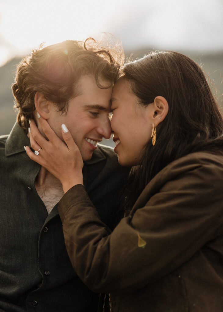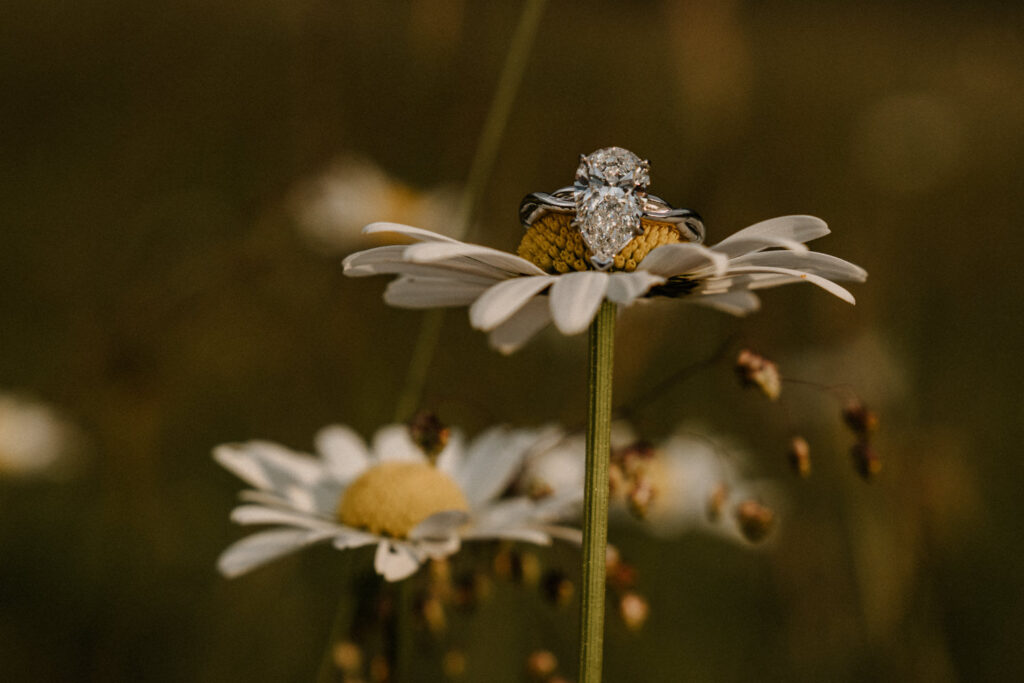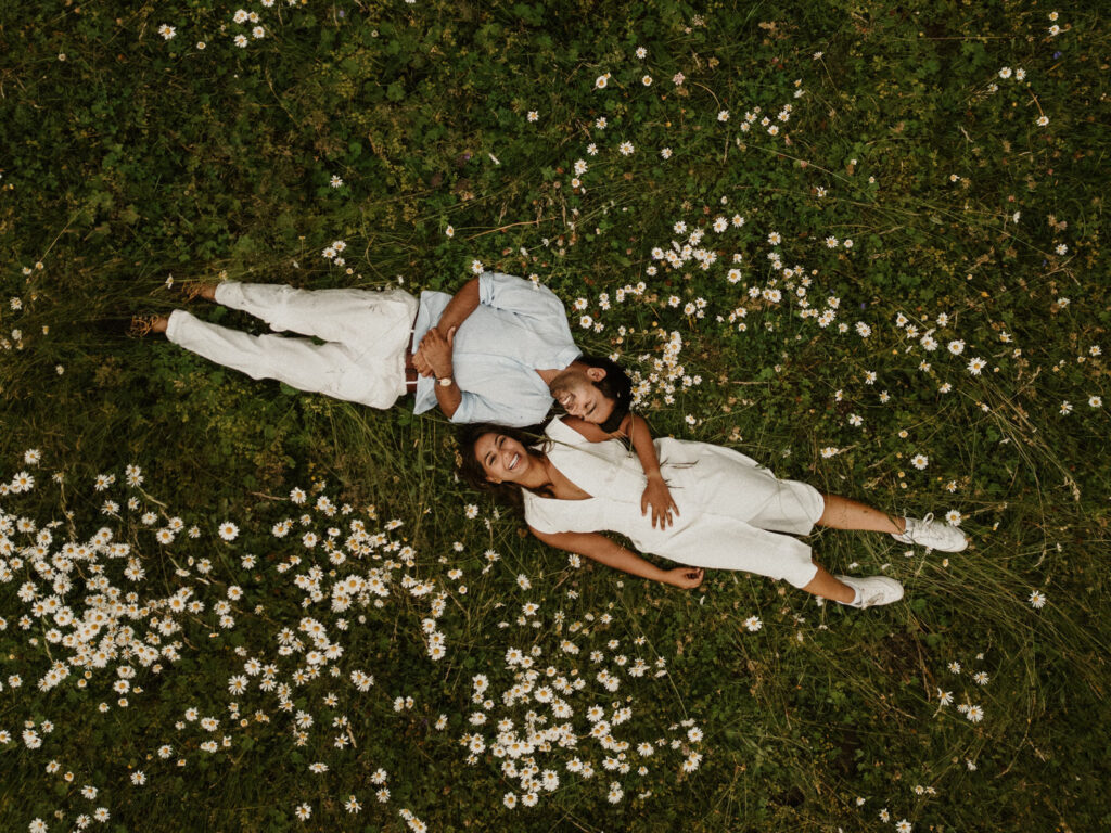 A summer proposal in a wildflower meadow feels vibrant, alive, and full of movement. Bursts of color stretch in every direction. Blankets of wildflowers and deep green hillsides spread beneath wide summer skies. It’s playful and romantic at the same time, capturing that unmistakable feeling of warmth, freedom, and adventure we all crave in summer.