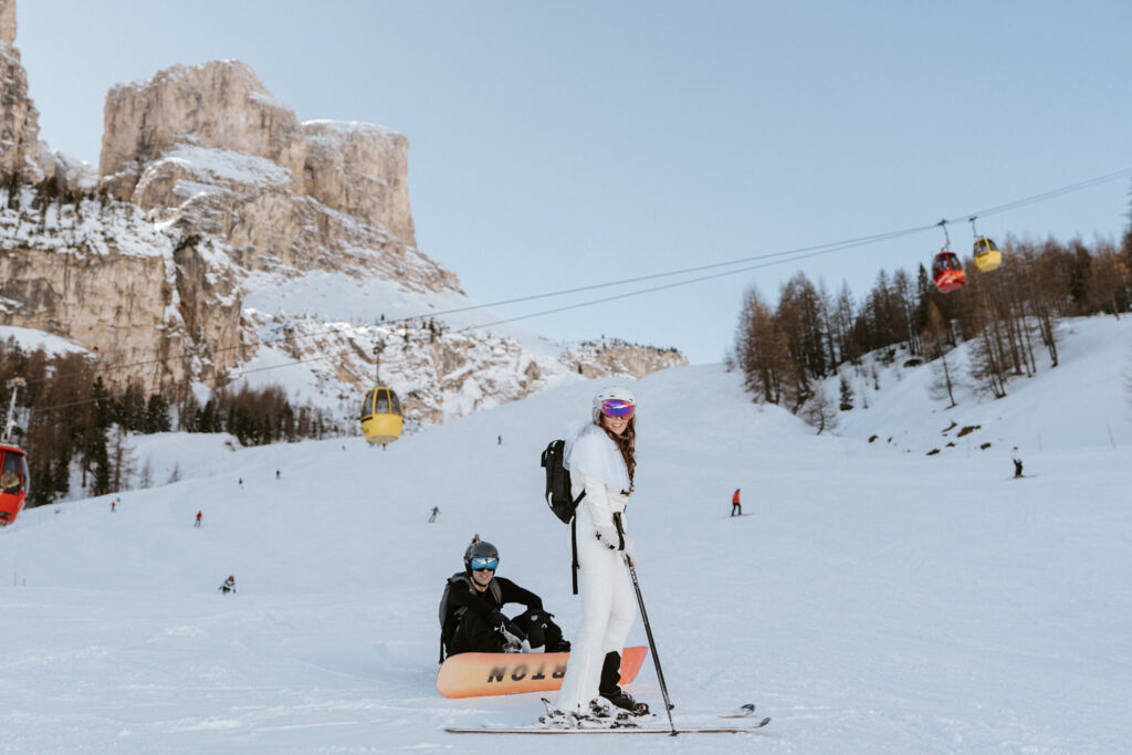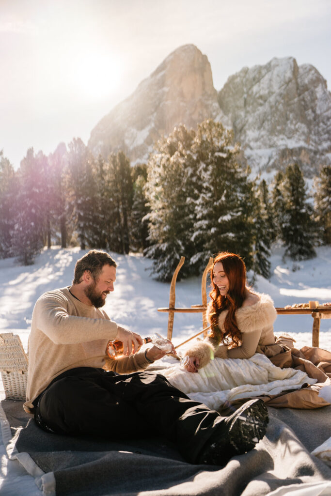 A ski or snowboard proposal in the Dolomites is playful, energetic, and full of spontaneity. It’s perfect for couples who feel most like themselves in motion. Sharing runs together, carving through fresh snow, and stopping to take in sweeping mountain views creates a setting which is boundless, yet deeply personal. As the pace slows and the snow stretches out around you, the proposal becomes a natural pause in the adventure, celebrating not just the question, but the lifestyle you share.