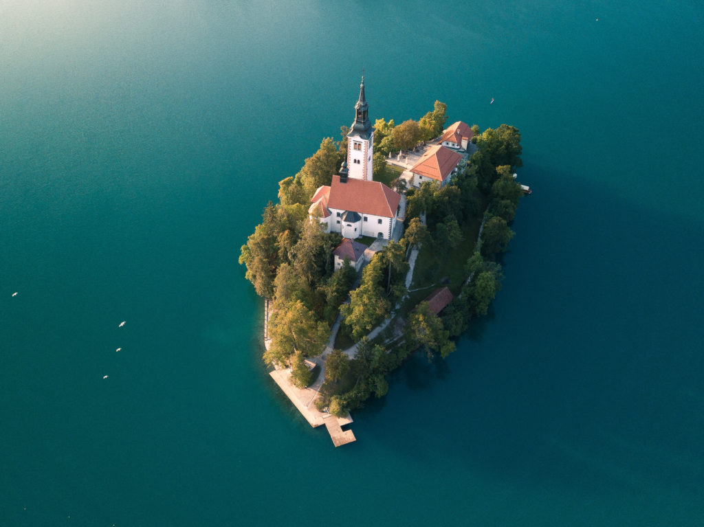 Where to stay: luxury cabin on the lake with private water access and views of Blejski Otok (the island and church in the center).